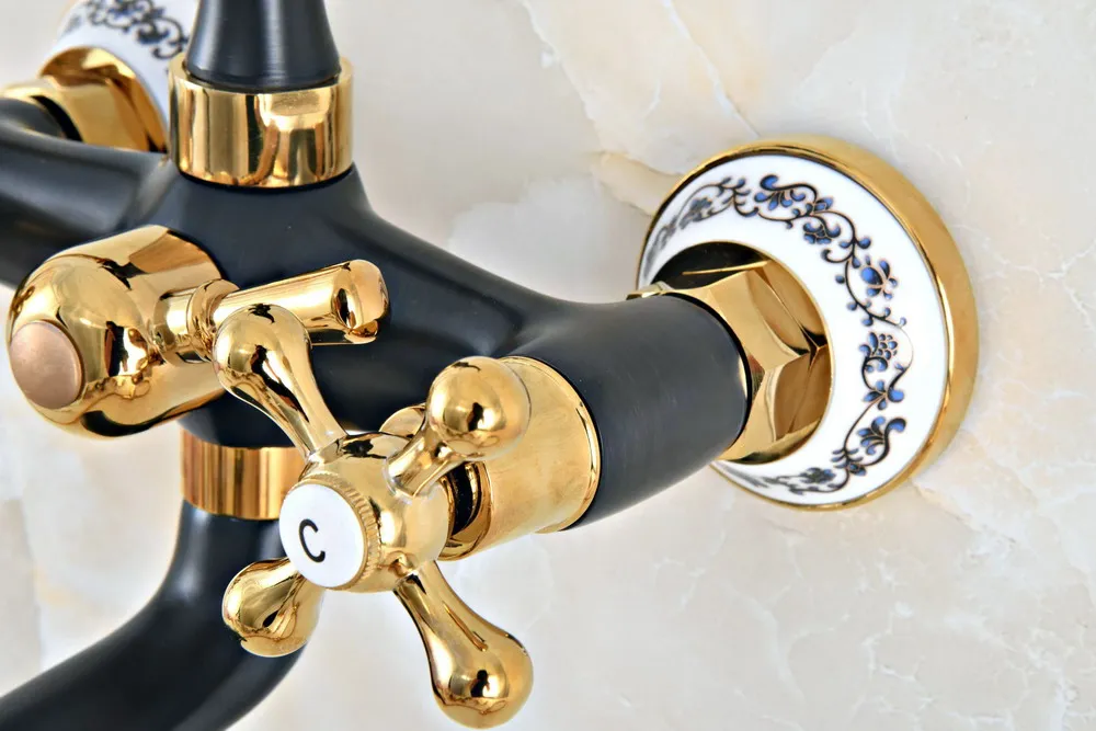 Shop our Black Gold Color Brass Wall Mount Bathroom Tub Faucet Dual Cross Handles Telephone Style Hand Showe with price US $129.99 , And get 35%OFF