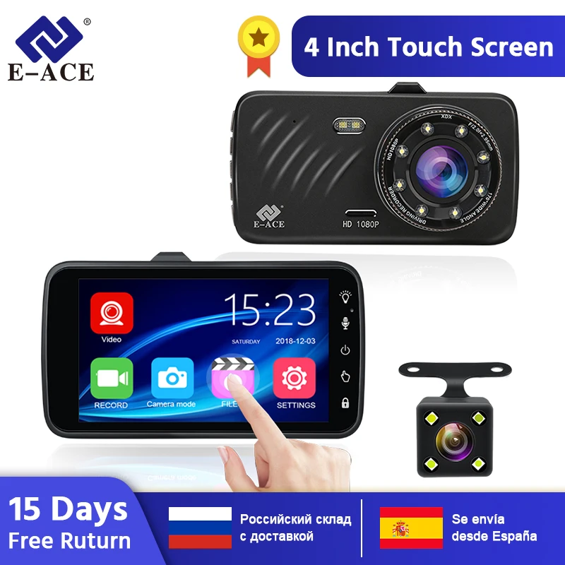 Free Shipping E-ACE Car DVR 4 Inch Touch Auto Camera Dual Lens Dashcam FHD 1080P Registrator With Rear View Camer are attractive to buyers from around the world